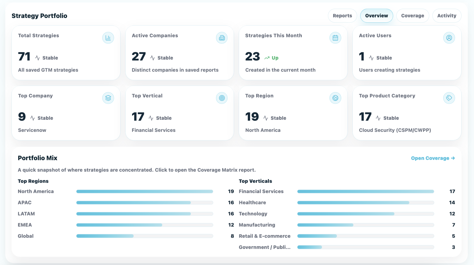 Dashboards and reporting provide continuous visibility into GTM performance, enabling teams to track progress, identify issues, and act quickly.